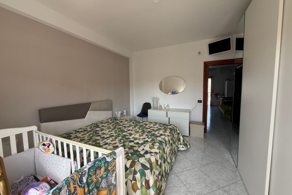 ingresso in dismpegno, cucina abitabile, sala, servizio, ripostiglio, camera matrimoniale e cameretta.