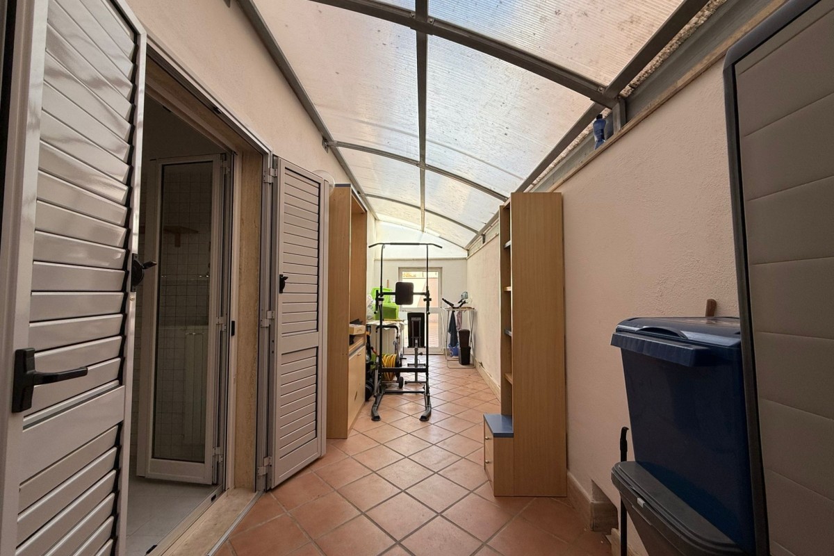 La zona giorno si affaccia su un'ampia veranda, ideale per momenti di relax o per pranzi e cene all’aperto. La zona notte, invece, gode di una verandina riservata, perfetta per creare un angolo lavanderia o uno spazio aggiuntivo versatile.